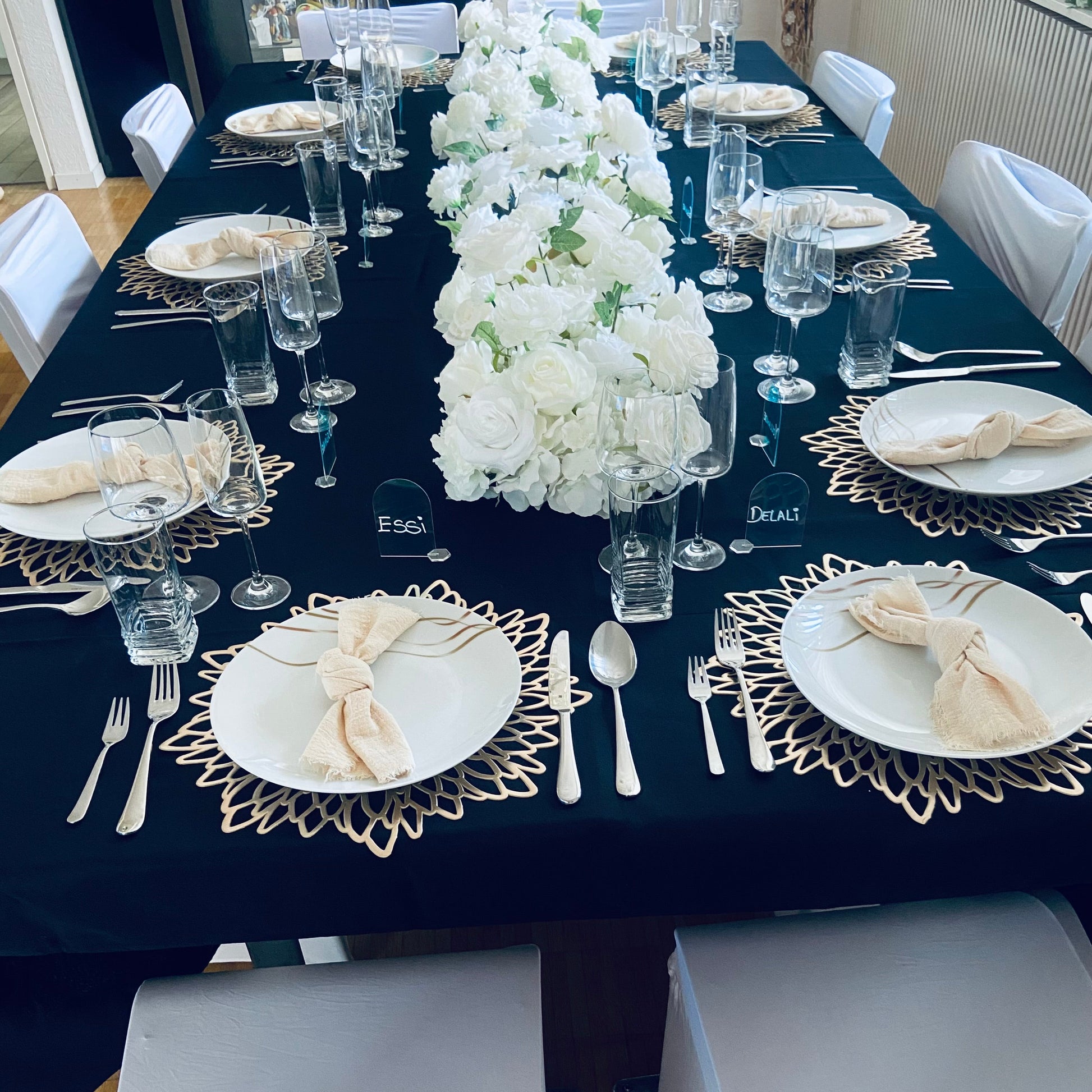 Décoration simple et élégante, parfaite pour les petits événements ou les ambiances intimistes. Possibilité d’ajouter des options gourmandes.